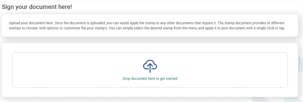 1. Jika kamu sudah melakukan pembelian kuota e-meterai, kamu bisa upload dokumen pada section “Drop document here”, lalu pilih dokumen yang akan dibubuhi.