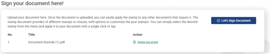 2. Setelah file terunggah, klik tombol “Let’s sign document”