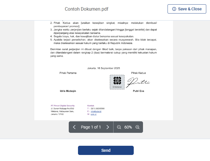 5. Jika posisi e-meterai sudah tepat, klik “Send”.